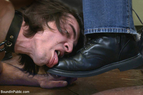 Pain slut Dylan Deap strips down to nothing but a jock as he’s locked in place and bound in leather. After enduring the flogger, Dylan gets his cock rock hard, his cock and balls bound in rope as his flogging continues. In the padded cell, he’s tossed around and tormented with the zapper and the crop before Van breaks out the cattle prod. The captive screams in pain as the crop rains down against his skin, his balls being crushed under the weight of Van’s boot. Dylan is then bound on a pedestal with the wooden cane beating against his ass before Van has his gimp shove a hard cock in Dylan’s mouth. Dylan is repeatedly flogged as he takes a rough fucking from the gimp’s hard cock. Van pries the stud’s mouth open as the gimp shoots a hot load of cum right into his mouth. Dylan is then let down as Van milks a load out of his cock, finishing Dylan off with some post-orgasmic torment before smacking all the cum back in Dylan’s face.