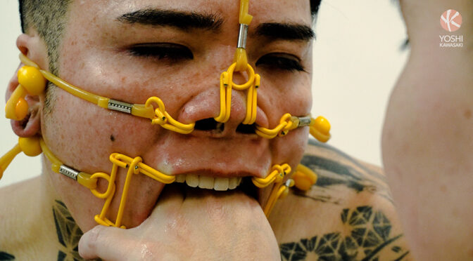 Master Sim prepares for the shoot, first tidying up his ropes and locking up Yoshi Kawasaki’s dick in a chastity cage. Submissive Yoshi sits on the floor eager to be bound. Sim ties up Yoshi till he’s fully immobile, taking full advantage of the situation, wrapping his hands around Yoshi’s throat for his own fun. As Sim controls Yoshi’s breath, Yoshi’s face reddens. The Master also begins teasing Yoshi’s plump, sensitive nipples as the submissive moans in ecstasy. He proceeds to bind Yoshi’s legs, uses face hooks and a gag ball to put Yoshi in his proper place. With his subject immobilized, Sim’s fun time kicks in. He plays with Yoshi’s pierced nips, repeatedly slaps his inner thighs as Yoshi cries and moans. With a ball gag filling his mouth, Yoshi’s saliva keeps dripping out. With a vibrator, Sim uses the carrot and stick method to his subject’s pleasure and pain. Yoshi’s happy to serve as Sim’s new toy.